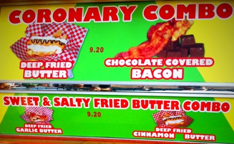 The County Fair opened up a few days ago here in San Diego, this years newest food item:  Deep Fried Butter.  According to a local news article none of the employees were aware of the calorie count.  No word yet on whether organic butter was used…